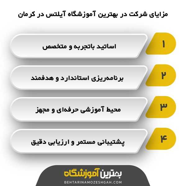 اساتید مجرب، برنامه آموزشی استاندارد، محیطی انگیزشی و امکانات حرفهای از ویژگیهای کلیدی یک آموزشگاه آیلتس معتبر در کرمان هستند.